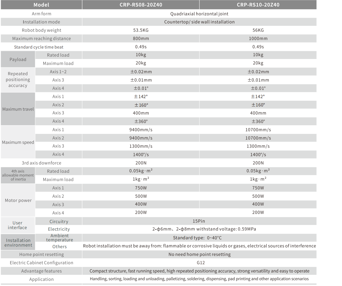 The body cable adopts the special cable for flexible robot. Built-in three-phase filter, effectively improve EMC and EMI performance, with gravity compensation, load adaptive, and S-T function, higher accuracy, less impact, typical working conditions faster beat.