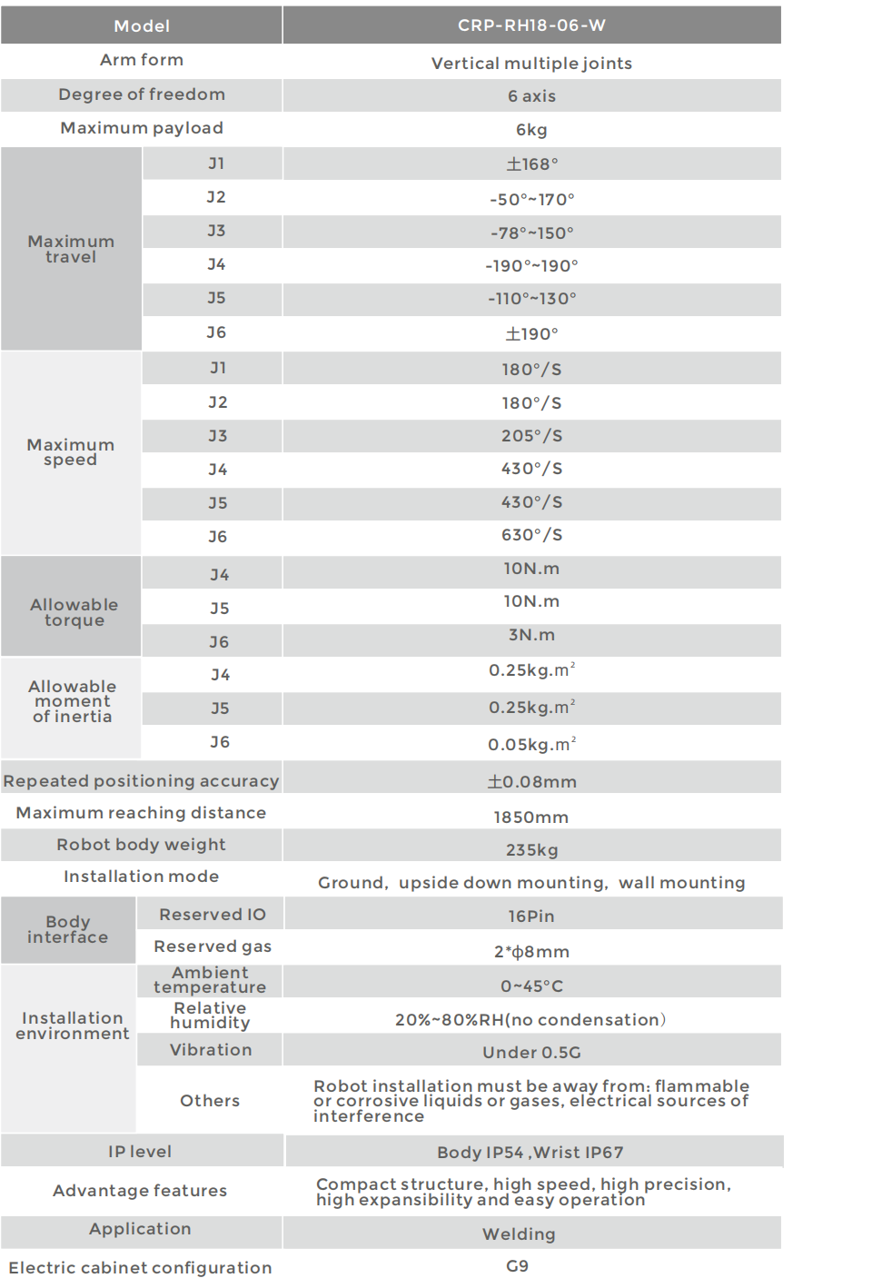 • J4,J6 axis hollow structure, can use hollow welding gun;