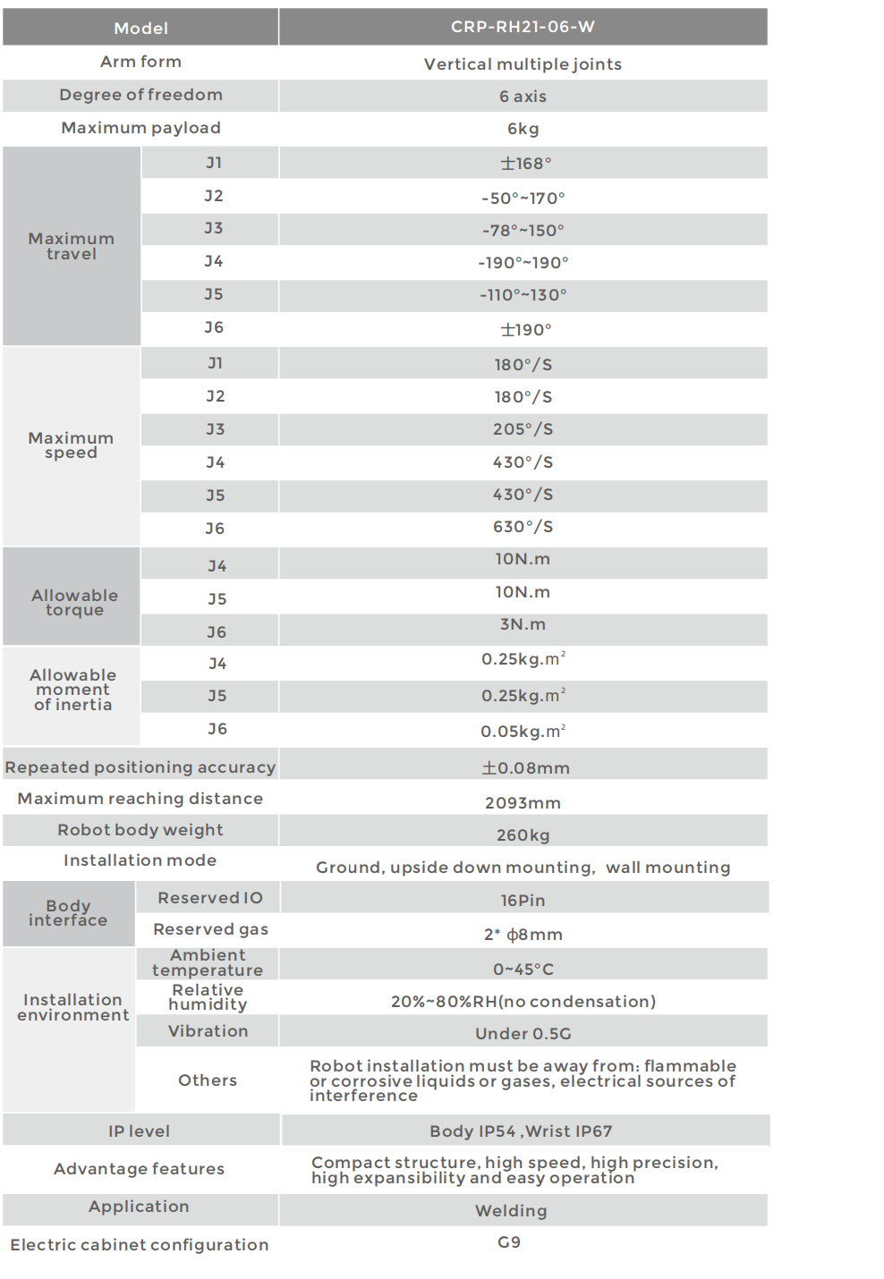 J4,J6 axis hollow structure, can use hollow welding gun;
