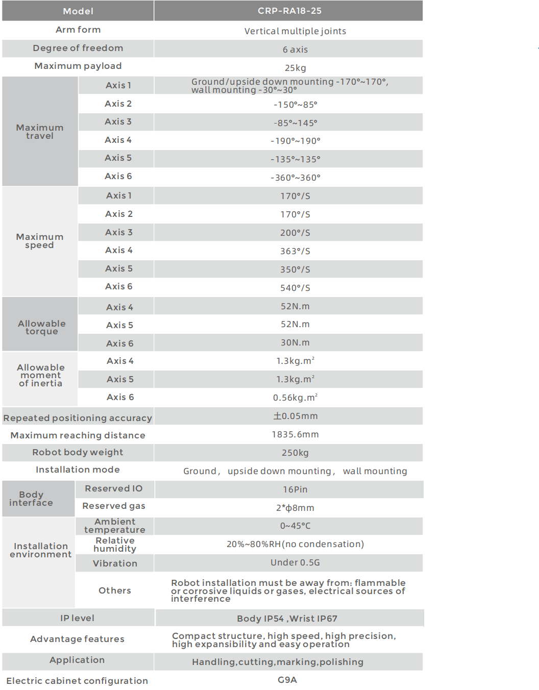 The design of the robot is highly compact, which is more light weight, especially the wrist is slender, so it can be applied in more scenarios.