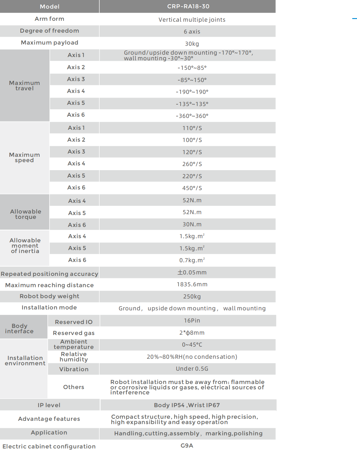 The design of the robot is highly compact, which is more light weight, especially the wrist is slender, so it can be applied in more scenarios.