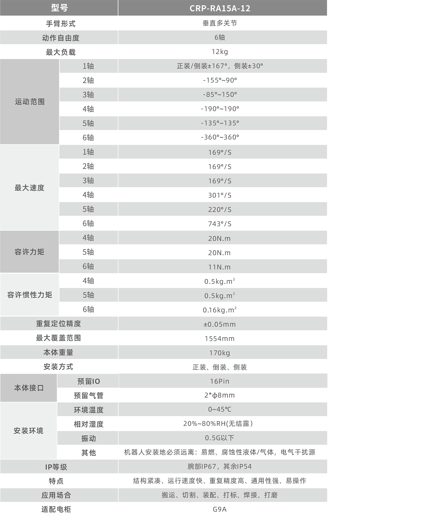 機(jī)器人整體結(jié)構(gòu)高度緊湊、輕量化,更加輕巧適用,尤其腕部更加小巧,滿足更多的場(chǎng)景。