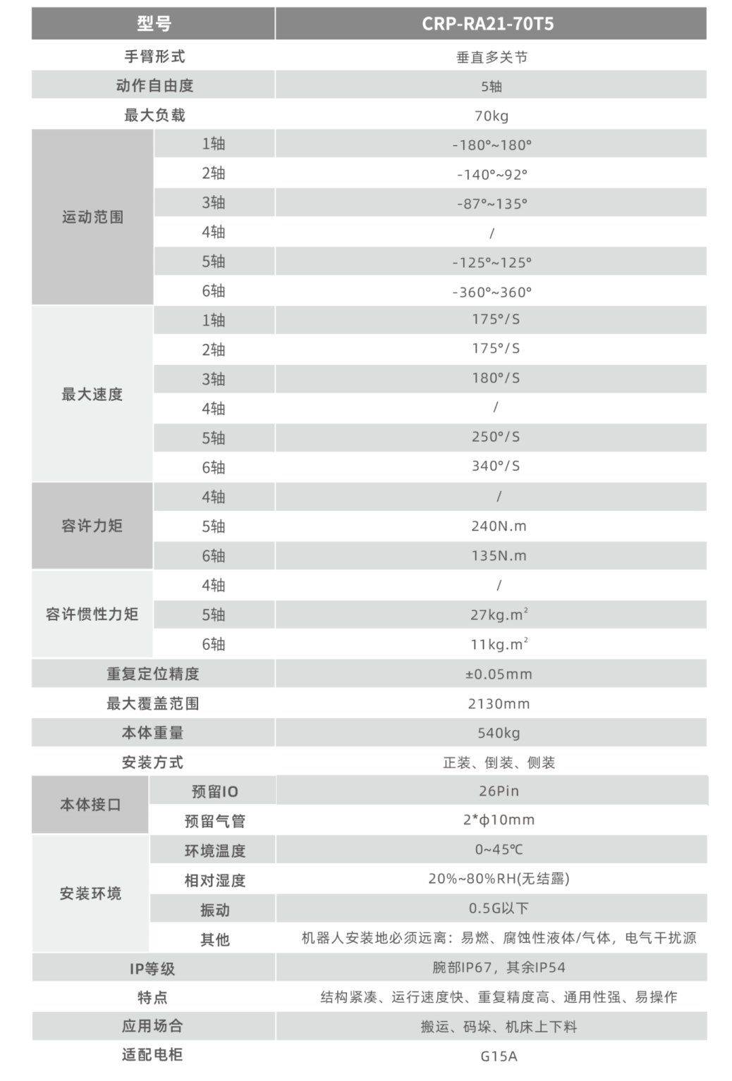 運(yùn)行速度快,重復(fù)定位精度,適用于搬運(yùn)、裝配、打磨等場(chǎng)景。