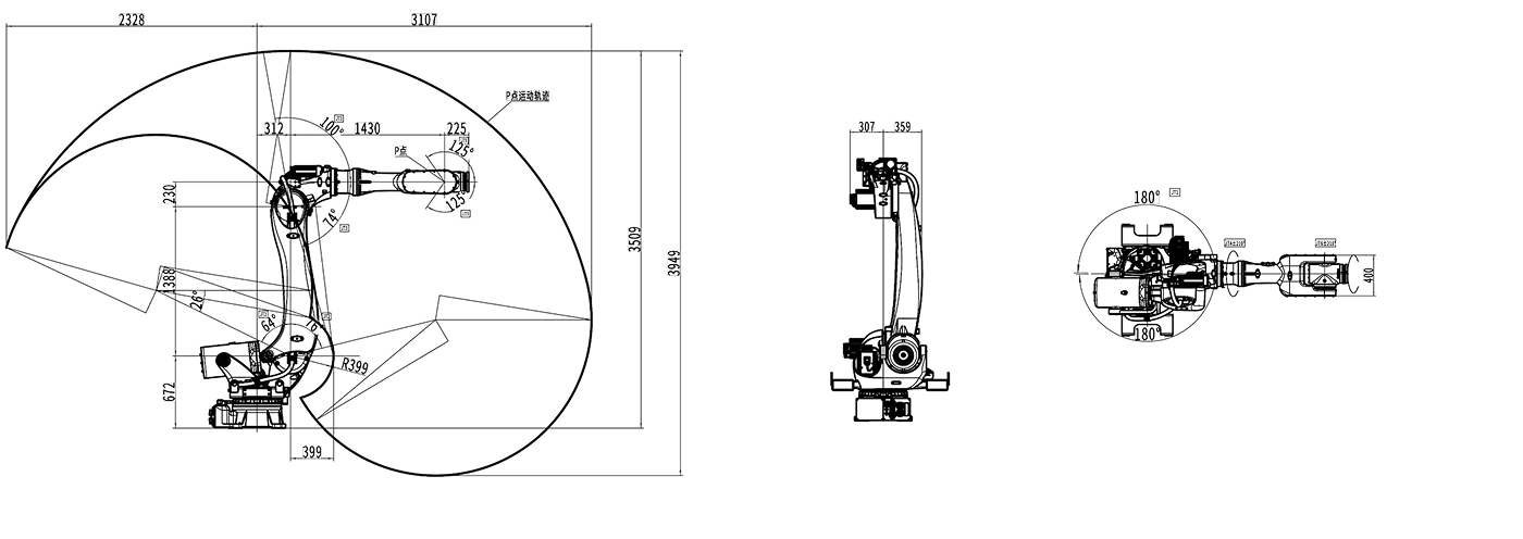手臂電機內(nèi)置,外觀簡潔,適用狹小空間作業(yè),運動更靈活。