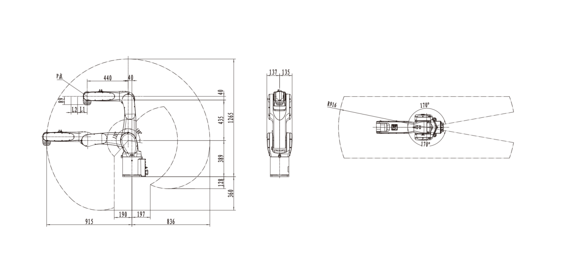 臂長916mm,手腕負(fù)載容量大,額定負(fù)載7kg,可輕松應(yīng)對多種應(yīng)用場合。