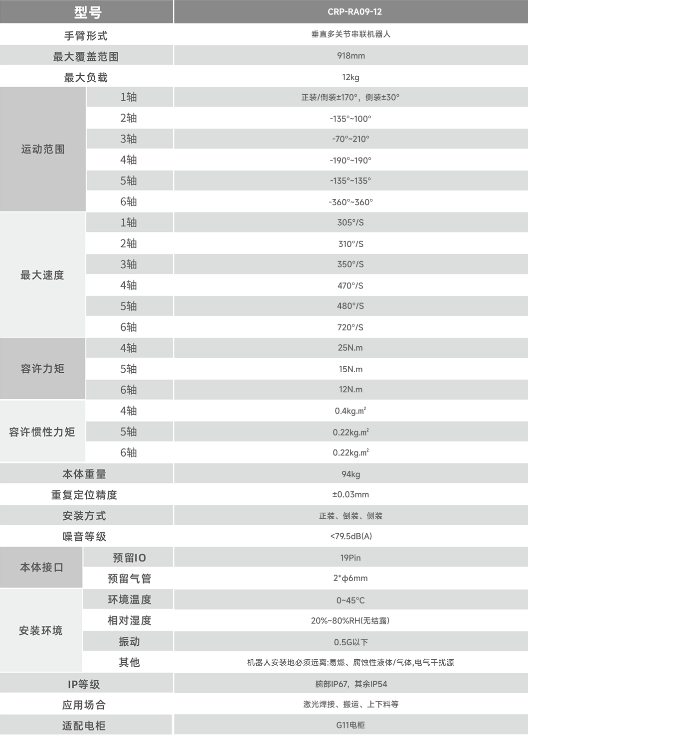 機(jī)器人負(fù)載12kg,臂展為900mm,機(jī)器人手腕具備更高的扭矩和慣量,負(fù)載承受能力更強(qiáng),應(yīng)用的場(chǎng)景更廣。